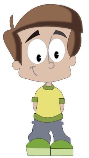 4.Peter trägt eine T-schort eine Hose und schuhe.