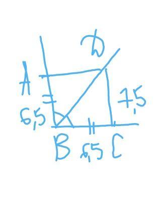 На сторонах угла ABC отложены равные отрезки BA = BC = 6,5 см и проведена биссектриса угла. На биссектрисе находится точка D, расстояние которой до точки C равно 7,5 см.