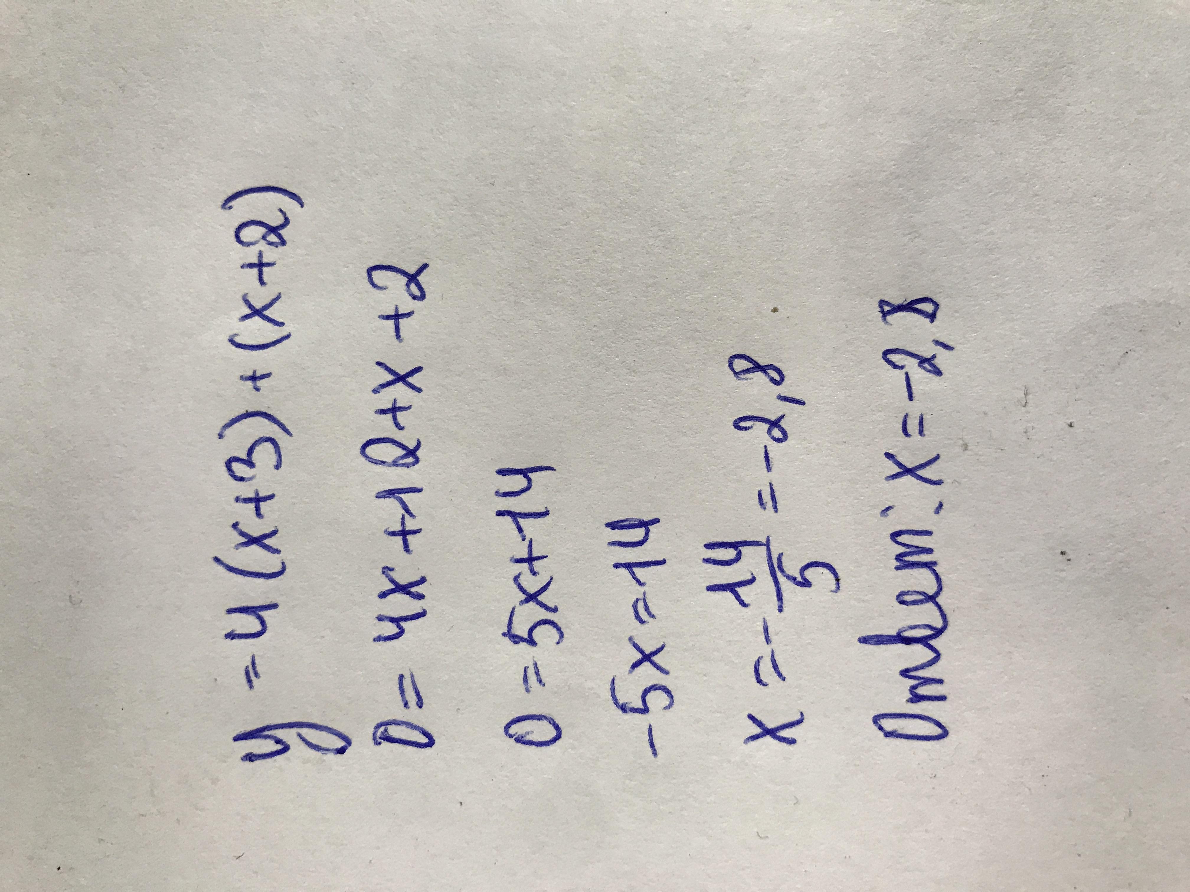 На листке, чтобы найти пересечение с осью х корень мы подставляем у=0