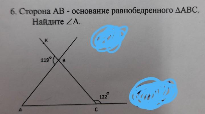 Сторона AB - основание равнобедренного ДАВС. Найдите Аугол K 119° С 122°