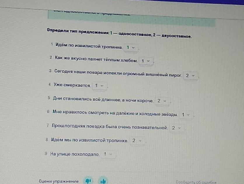 ошибка в 6,оно двусоставное мне-подлежащее нравилось смотреть-сказуемое. Все остальное верно,удачи)