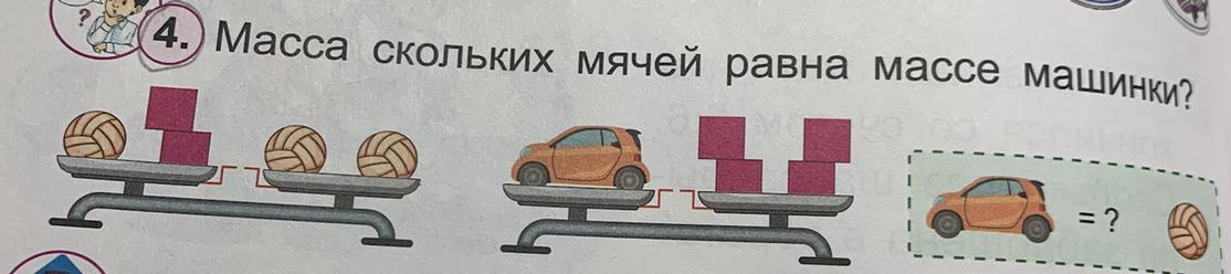 масса 2 мячей равна массе машинки