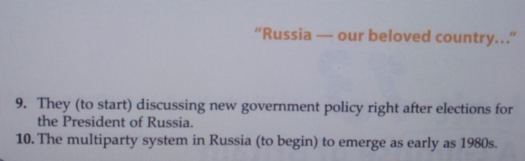 9. They started discussing new govermment policy right after election for the Presedent of Russia.