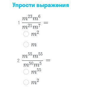 2) m^55 *m^55 / m^50 *m^5 = m^110 / m ^55=m^55