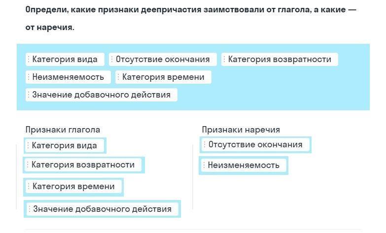 Признаки глагола:
