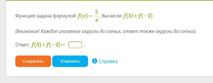 f(3)+f(-2)= 5/3 - 5/2=1,67-2,50= - 0,83.