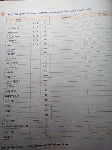 Образуйте прилагательные, обратите внимание на чередование согласных