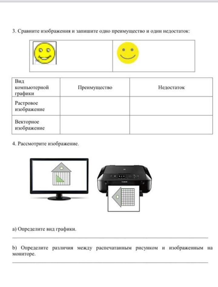 Достоинства растровой графики: Растровые редакторы являются наилучшим средством обработки фотографий и рисунков, т.к. обеспечивают высокую точность передачи градаций цветов и ПОЛУТОНОВ. Недостатки растровой графики: Изображения, создаваемые в растровых программах, всегда занимают много памяти. По этой причине информация в файлах растрового формата хранится, как правило, в сжатом виде. Достоинства векторной графики.Преобразования без искажений. Маленький графический файл. Рисовать быстро и просто. Независимое редактирование частей рисунка. Высокая точность прорисовки (до 1 0О0 000 точек на дюйм). Редактор быстро выполняет операции. Недостатки векторной графики: Векторные изображения выглядят искусственно. Ограниченность в живописных средствах.