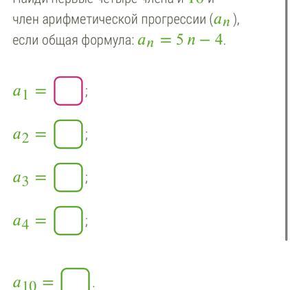 Найди первые четыре члена и 10-й член арифметической прогрессии (),