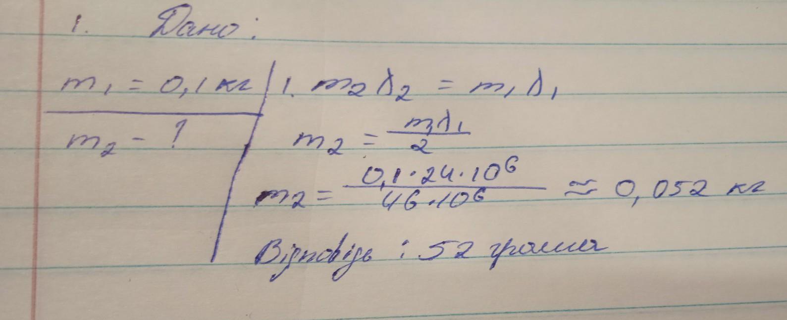 - m2= 0.1*24*10⁶/46*10⁶(дріб)