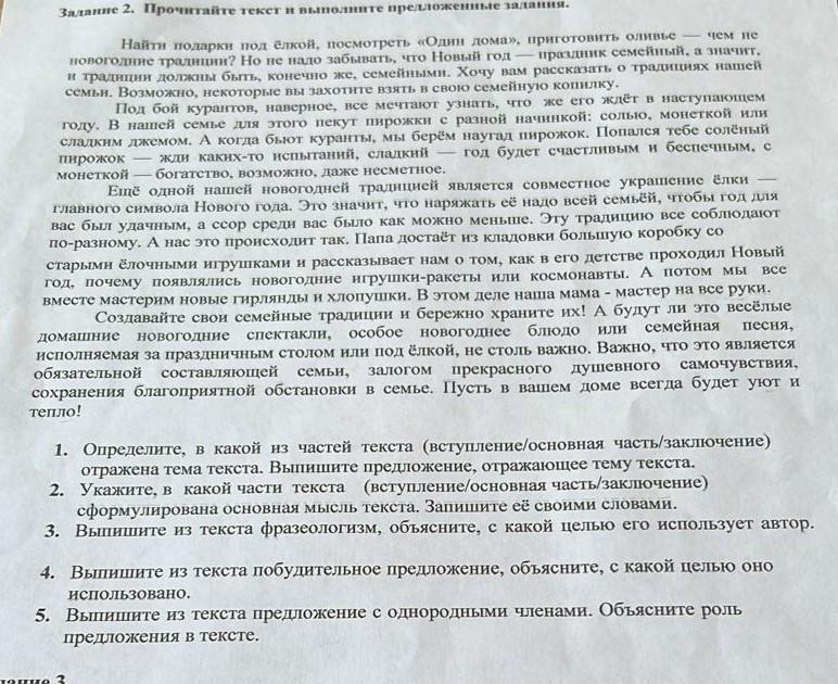 задвние 2. прочитайте текст и выполните предложенные задания. Найти подарки под ёлкой, посмотреть "один дома" , приготовьте оливье