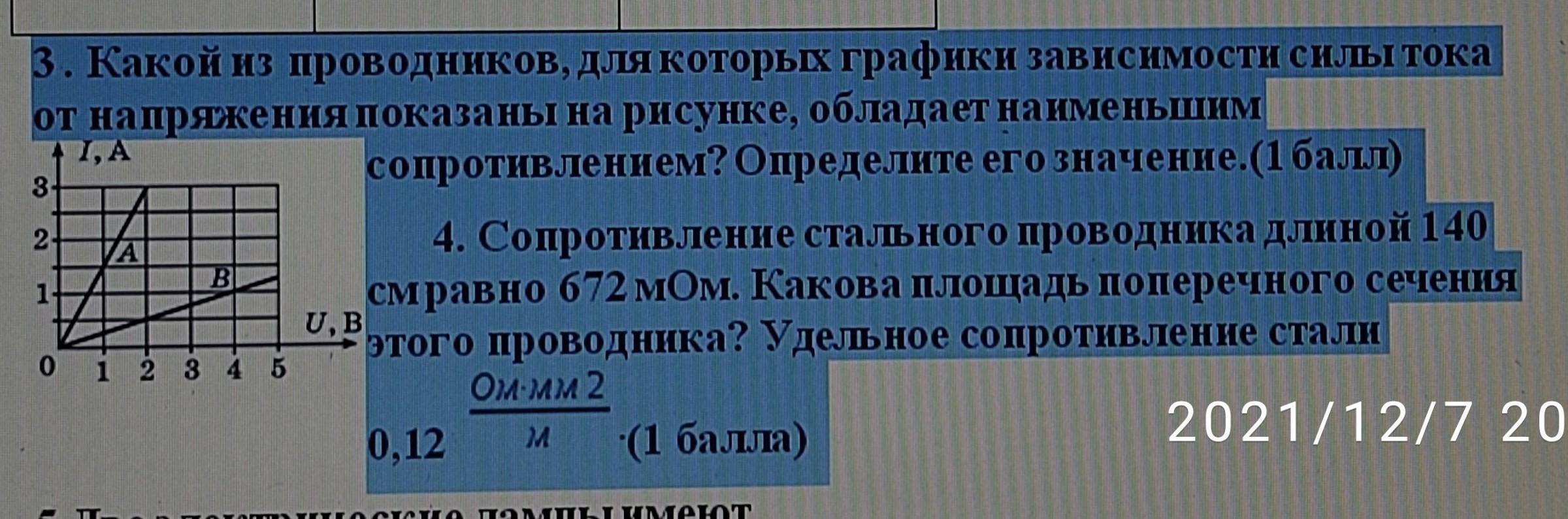 Объяснение: 3)R=U/I=2B/3A=2/3 Oм