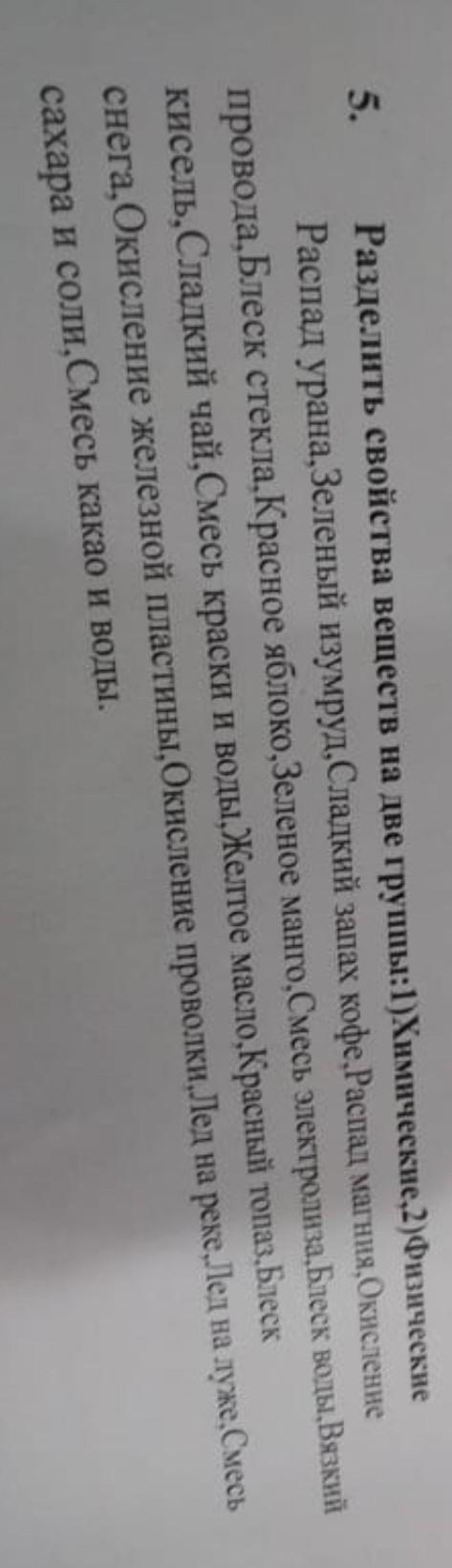 Химические - распад урана, распад магния, окисление провода, смесь электролиза, окисление железной пластины, окисление проволки, смесь сахара и соли, смесь какао и воды, блеск стекла