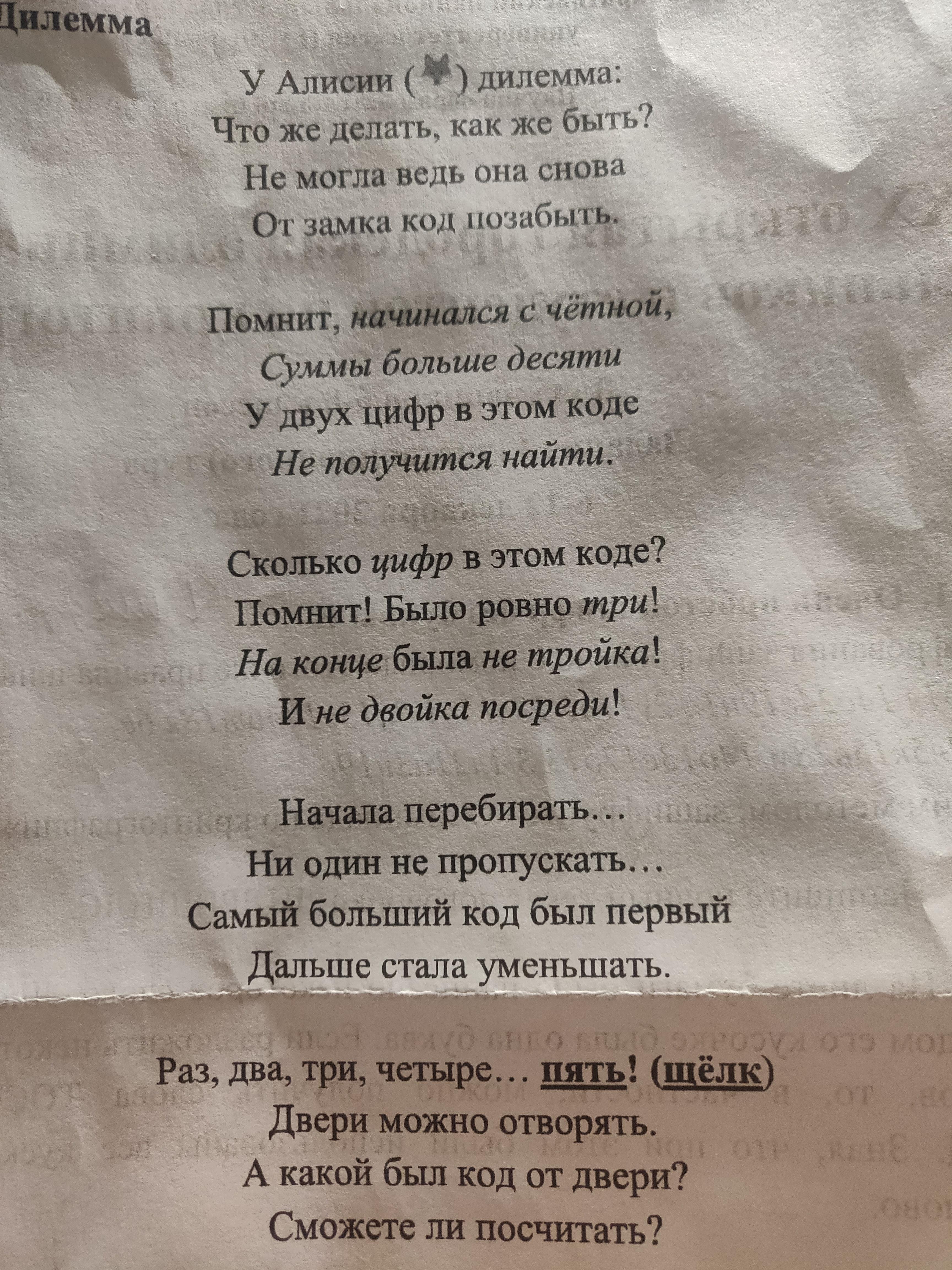 Число трёхзначное! Первая цифро может быть только чётной! Вторая любая кроме 2, а третья любая кроме 3! Сумма любых цифр не может быть больше 10! Начиная с самой большой цифры на пятую попытку код подошёл!