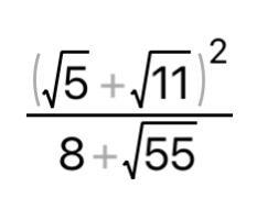 [ ( √5 + √11 )² ]/( 8 + √55 ) = [ ( √5)² + 2√5 * √11 + (√11 )²]/( 8 + √55 ) =