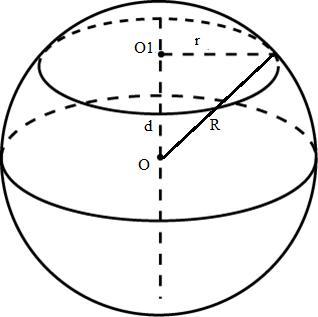 Поскольку d - это перпендикуляр, то по теореме Пифагора можно найти раидус шара R: