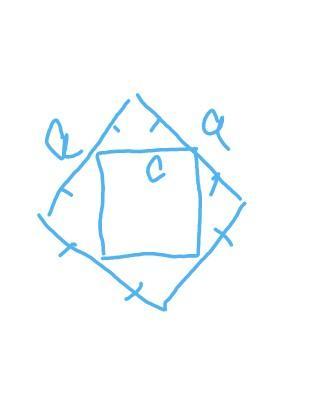 Сторона меньшего квадрата равна гипотенузе прямоугольного тр-ка: