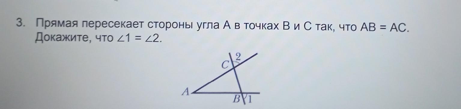 2) В свою очередь угол С=2(вертикальные), В=1 (вертикальные). Значит угол 1=2 ч.т.д.