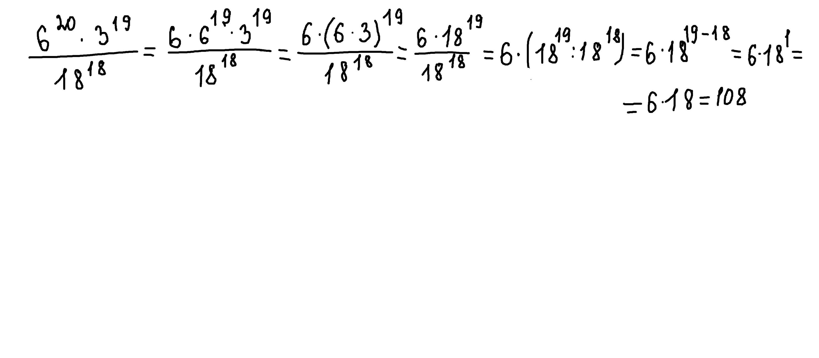 Найдите значение выражения 6 ^20*3^19/18^18 Ответ есть 108, объясните как правильно расписать пример, что бы понять как решить его.