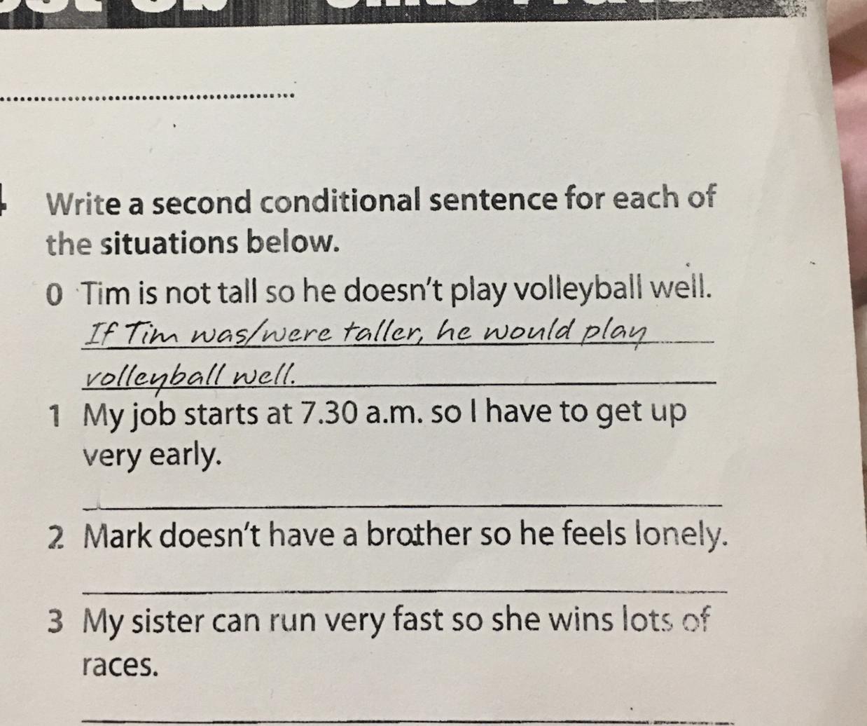 2. If Mark had a brother, he wouldn't feel so lonely.