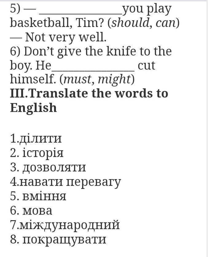 2. history 3. to allow 4. prefer 5. skill 6. language 7. international 8. to improve
