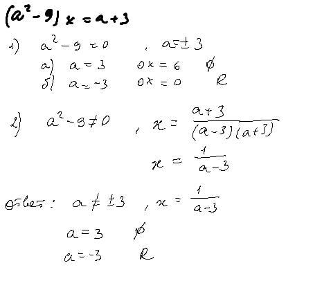 Решите уравнение (а^2-9)x=a+3 Помогите плиз, даю много баллов (^-степень)