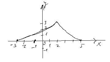 зростає - рисуєте лінію вгору, спадає - вниз, по осі Ох не виходите за межі [-3;5]