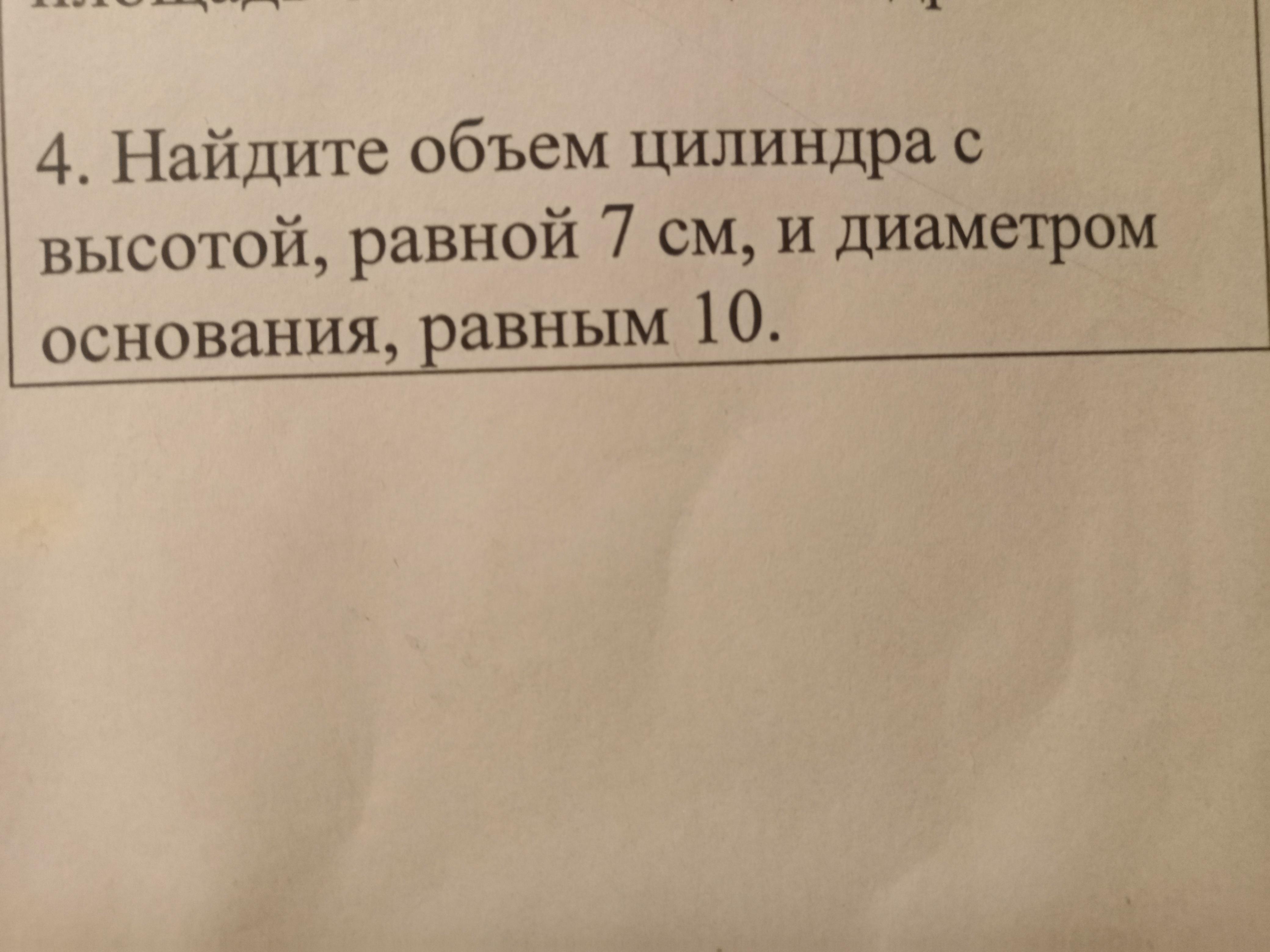 Найдите объем цилиндра с высотой 7см, и диаметром основания равным 10.