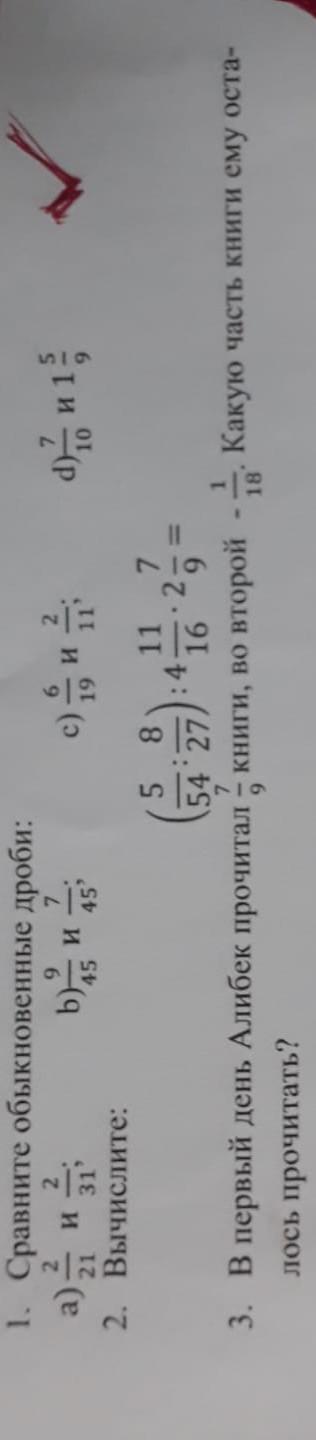 1.там нужно сравнить дроби...2.решить пример....3.решить задачу с краткой записью и если ответ сокращается сократить