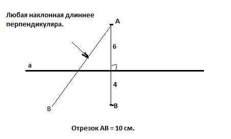 точки а и в лежат по разные стороны прямой а. растояние от точки а до прямойсравно 6см а от точки в до прямой 4см может ли расстояниеммеждумточками а и в быть 8см