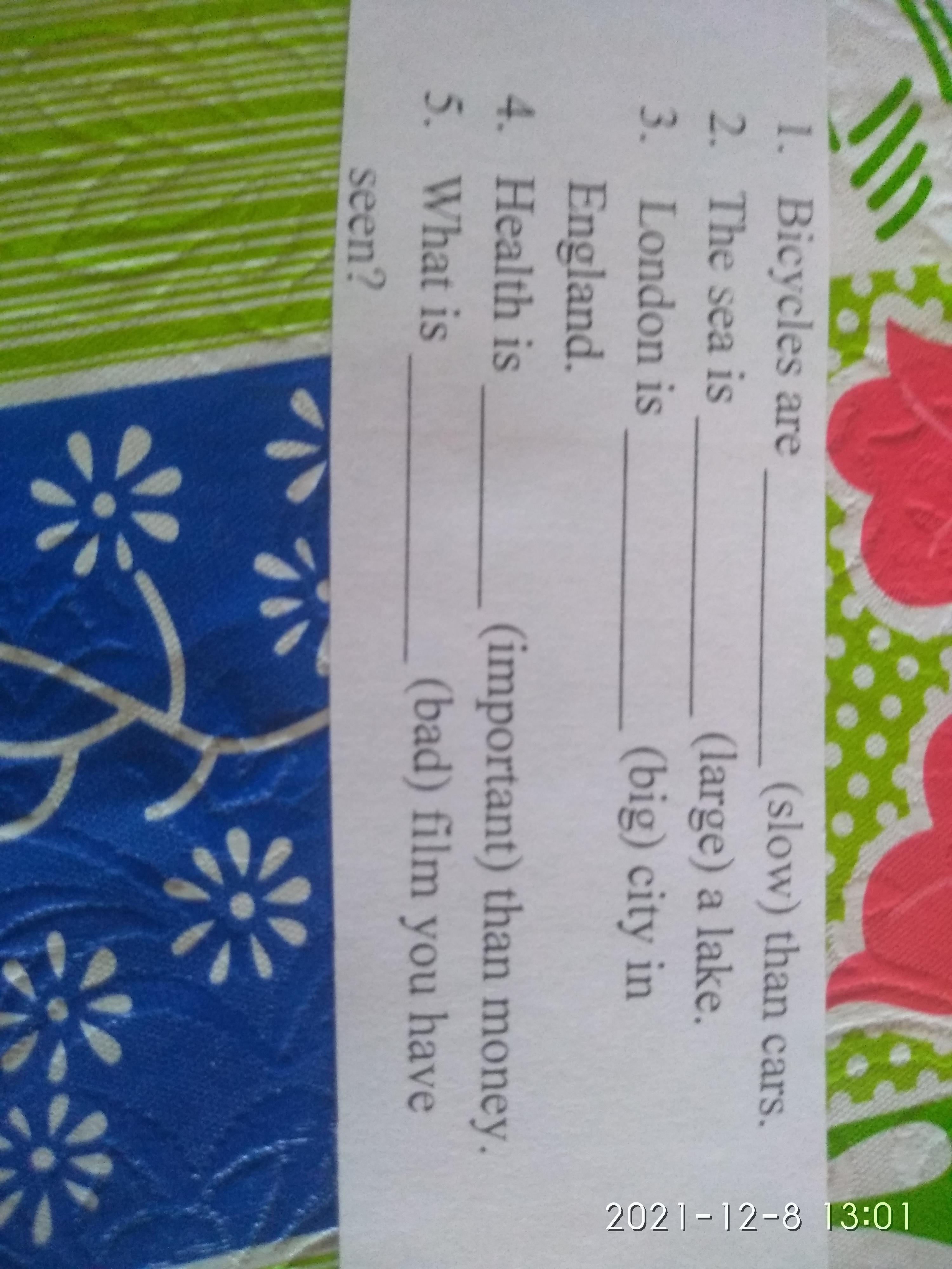 1. slower, 2. bigger, 3. a big, 4. more important, 5. a baddest (в пятом не уверена).