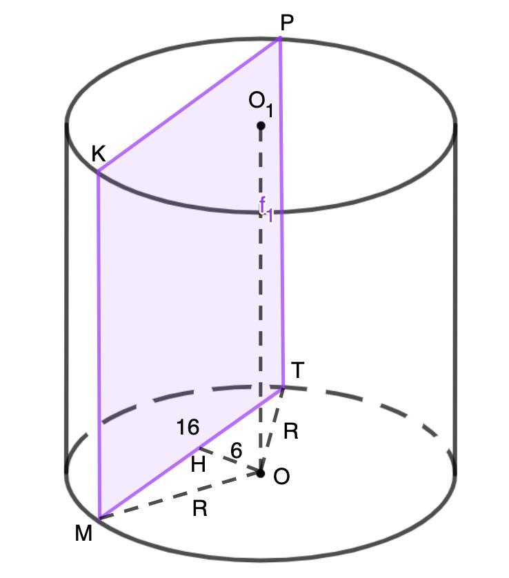 В цилиндре параллельно его оси проведена плоскость на расстоянии 6 см от нее. Эта плоскость пересекает основание цилиндра по хорде, которая равна 16 см. Найти радиус цилиндра.
