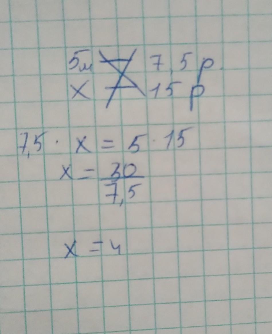 за 5 метров ткани заплатили 7,5 рублей. Сколько можно купить за 15 рублей?