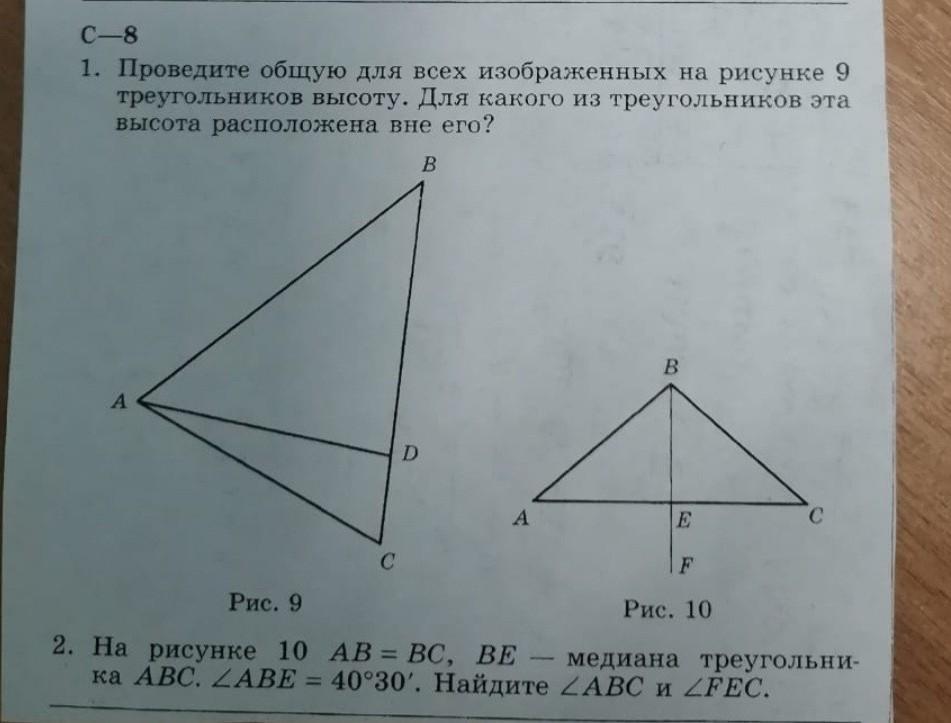 9) тр-к АВС- равнобедренный, значит, медиана ВЕ есть высота и биссектриса, тогда, < СEF=90, <ABC=2*40гр. 30'=81гр.
