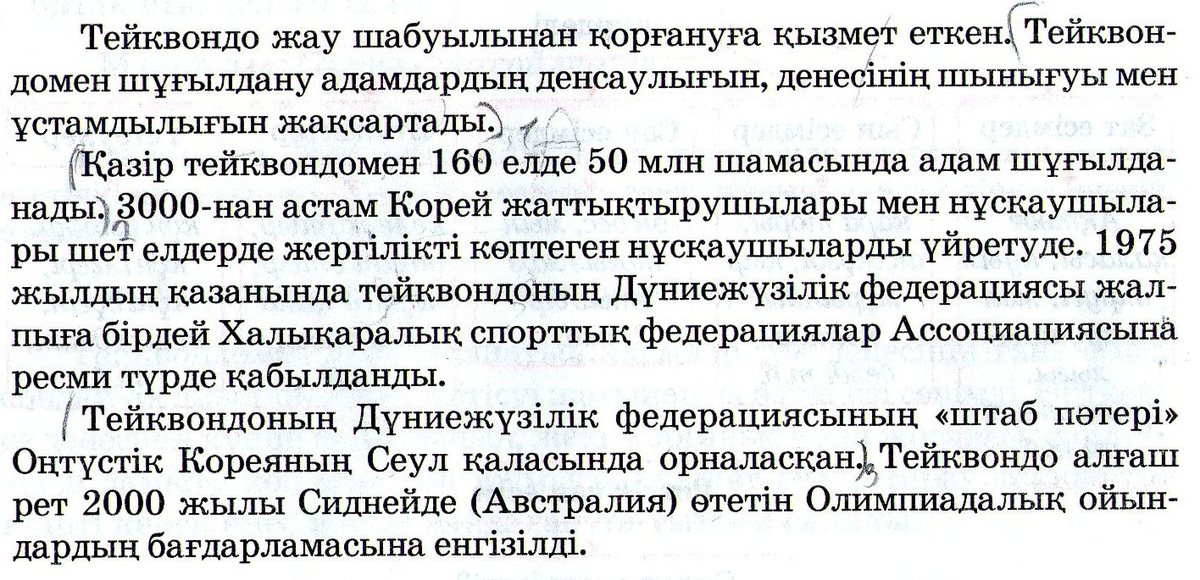 Т спорты жау шабуылынан қорғаныш Тейквондомен шұғылданған адамның денсаулығы жақсарады,денесі шынығады және шыдамдылық жақсарады