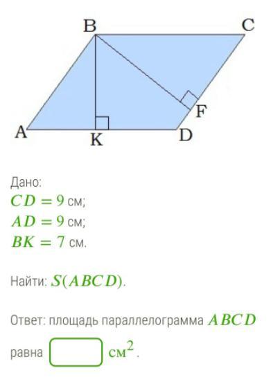 Площадь параллелограмма равна произведению стороны на высоту, проведённую к ней.