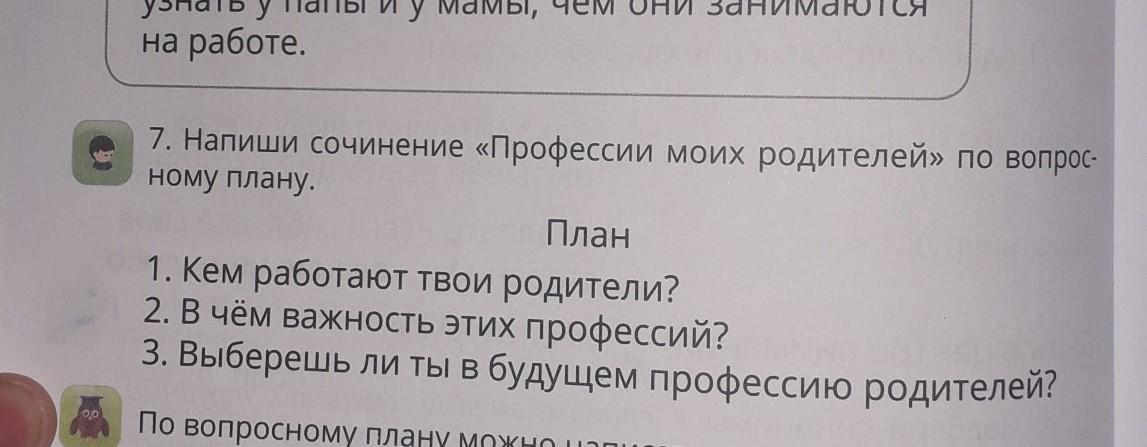 Моя мама работает в столовой и у неё очень интересная работа. А папа работает охранником школы он хорошо учился и добился успехов в жизни