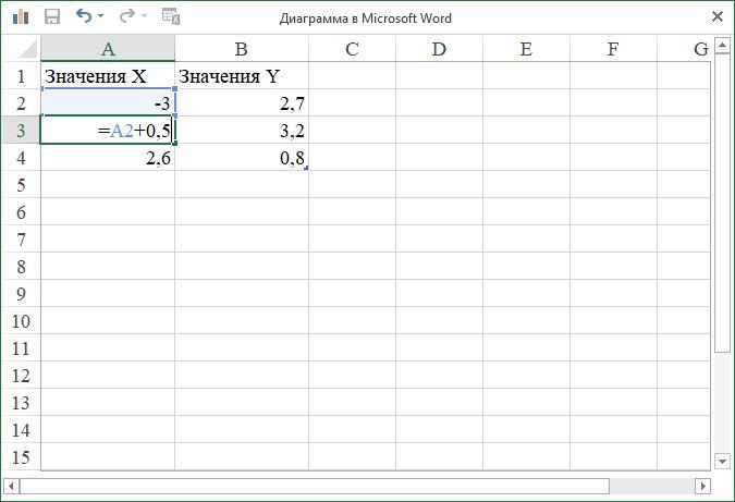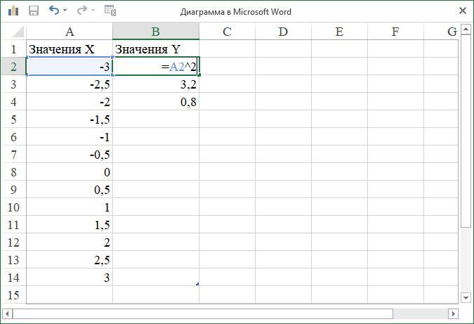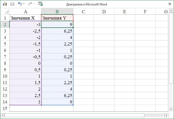 В ворде нужно построить график функции y = x(в квадрате), где x принадлежит [-3;3]. Дельта x = 0,5.