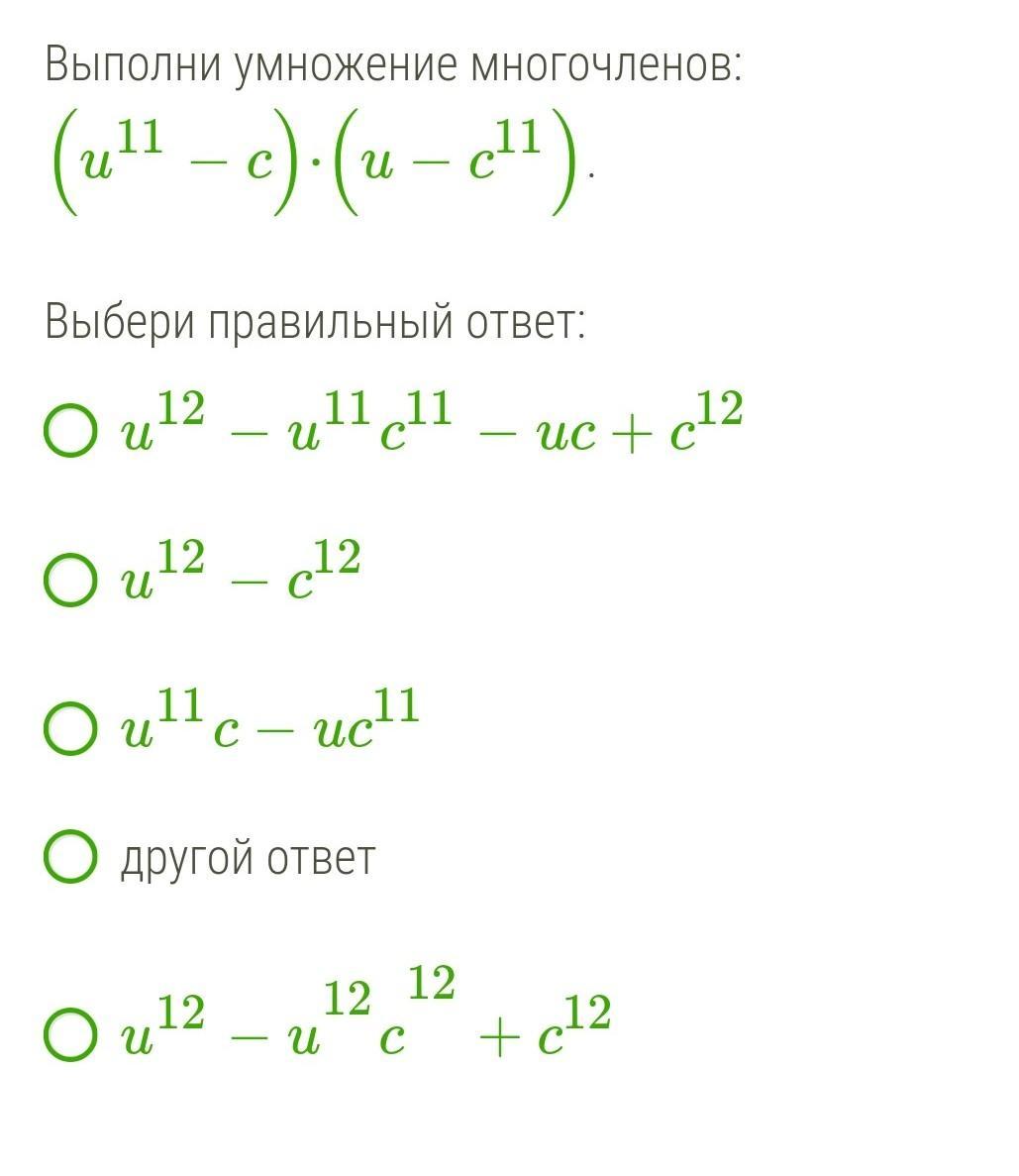 (u¹¹-c)(u-c¹¹)=u¹¹⁺¹-u¹¹c¹¹-uc+c¹⁺¹¹=u¹²-u¹¹c¹¹-uc+c¹²