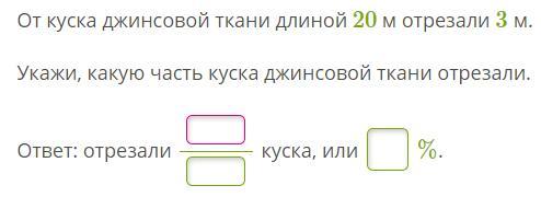 От куска джинсовой ткани длиной 20 м отрезали 3 м.