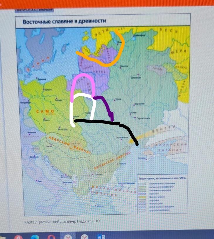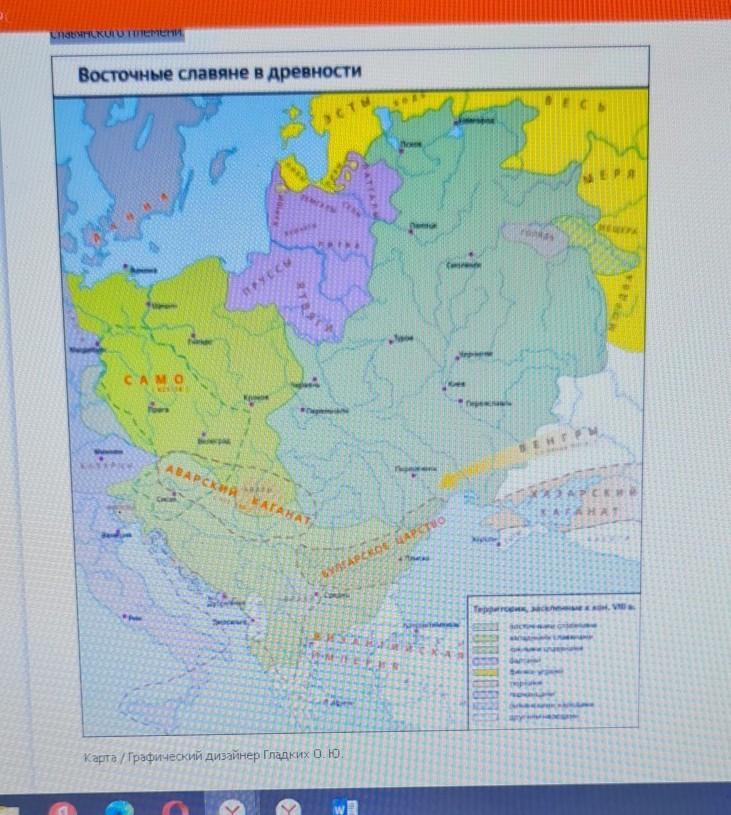 Укажите цифрами на карте местоположение не менее пяти славянских племён. В тетради напротив каждой цифры укажите название славянского племени.