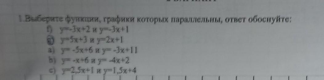 Графики линейных функций параллельны в том случае , когда равны угловые коэффициенты , то есть когда равны коэффициенты при x .