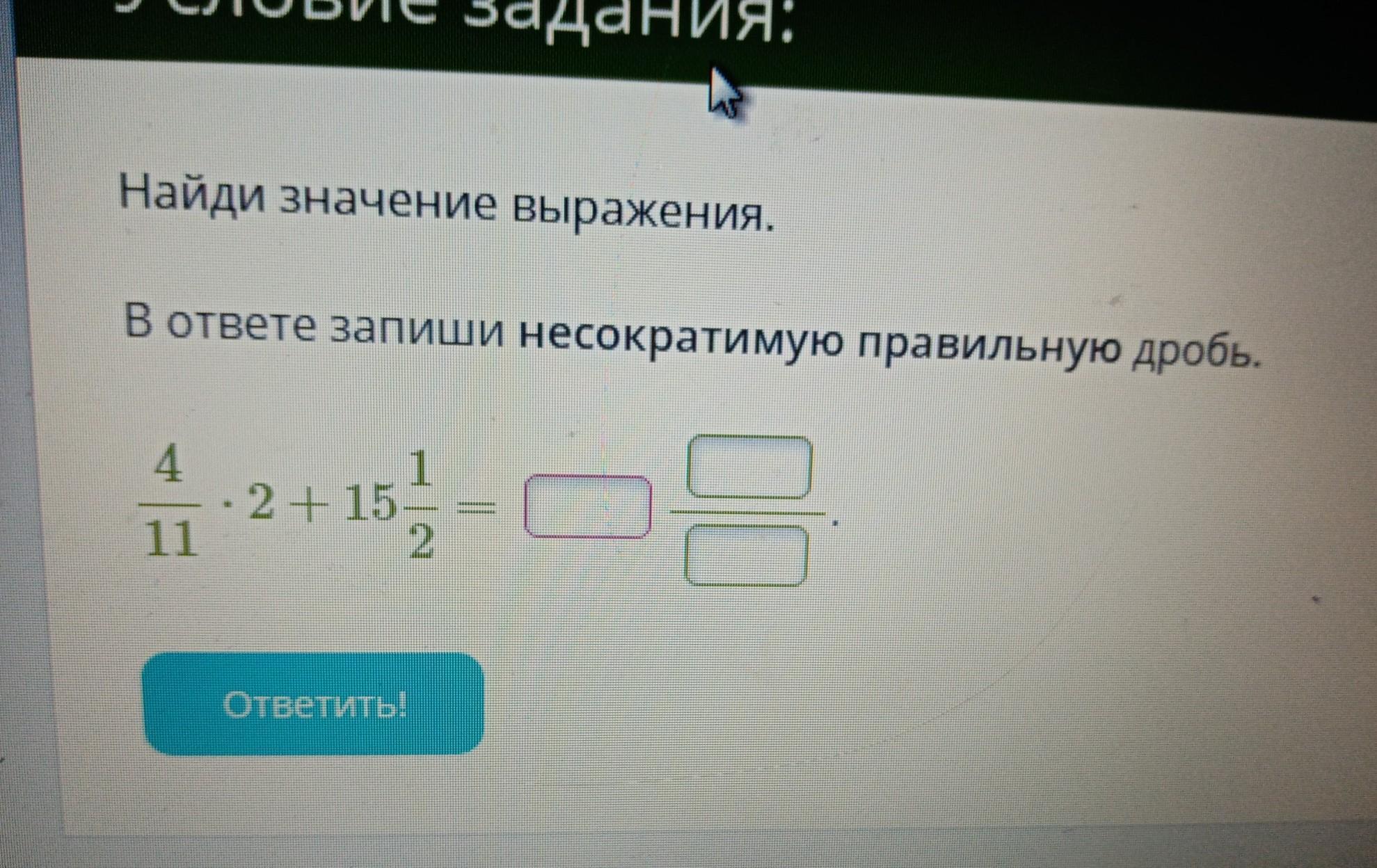 Переводим пример в другую дробь и умножаем 8/11+31/2=357/22 и приводим в правильную дробь, получается 16 5/22