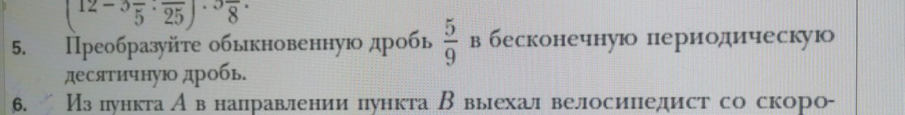 преобразуйте обыкновенную дробь 5 /9 в бесконечную периодическую десятичную дробь В СТОЛБИК СРОЧНО ДАЮ 20 БАЛОВ