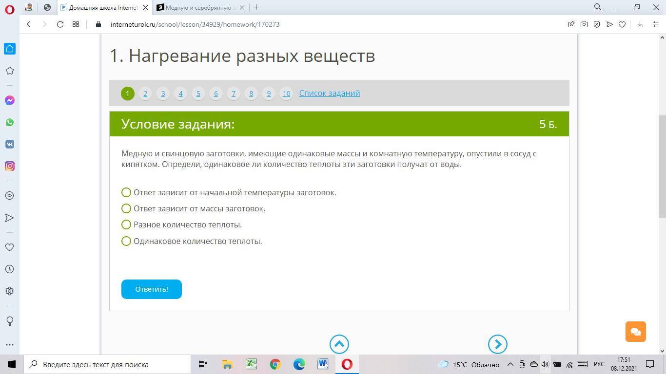 m и Δt одинаковые, но у меди удельная теплоёмкость с в 3 раза больше.