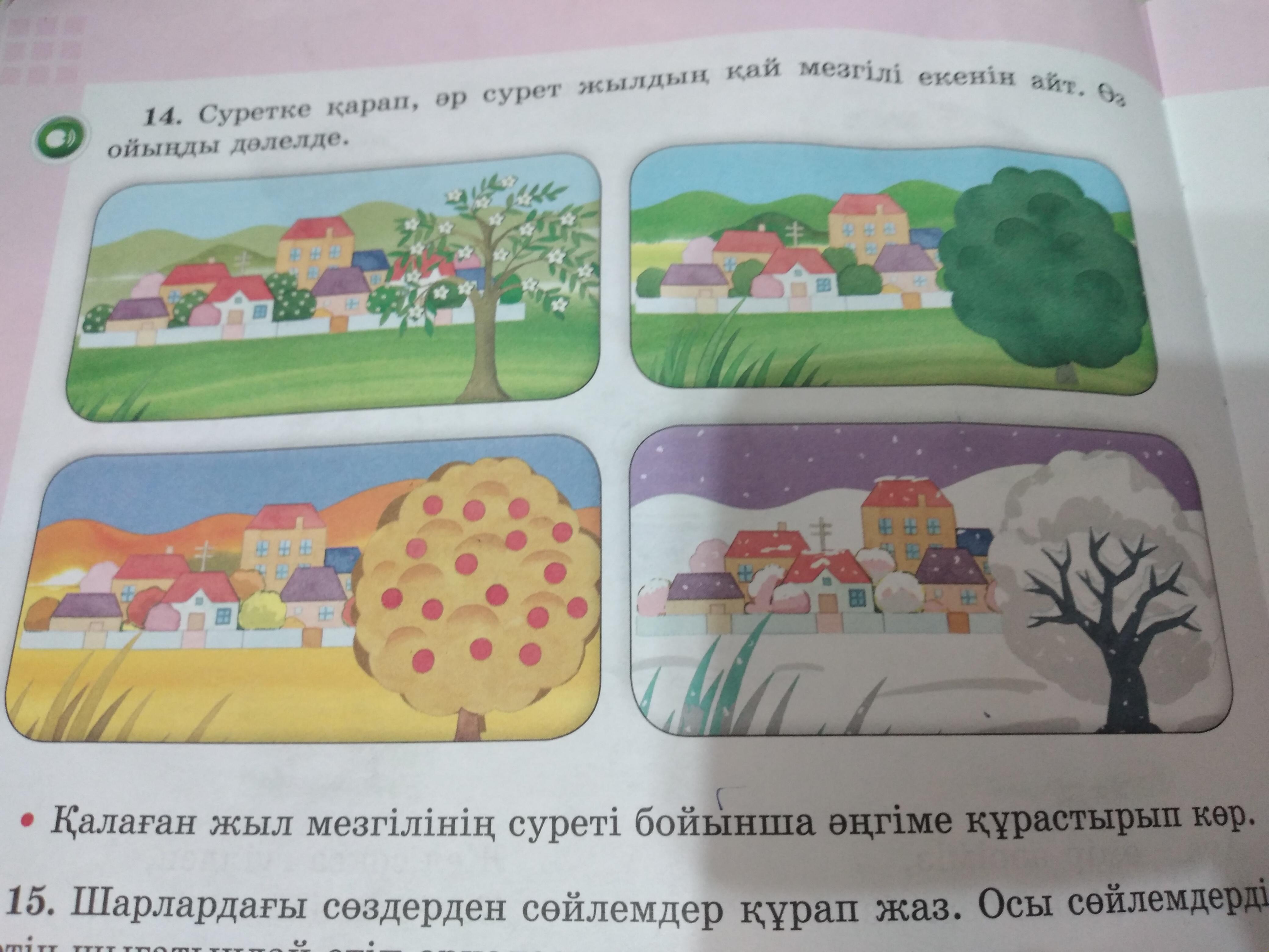 Суретке қарап, әр сурет жылдың қай мезгілі екенін айт. Өз ойыңды дәлелде.