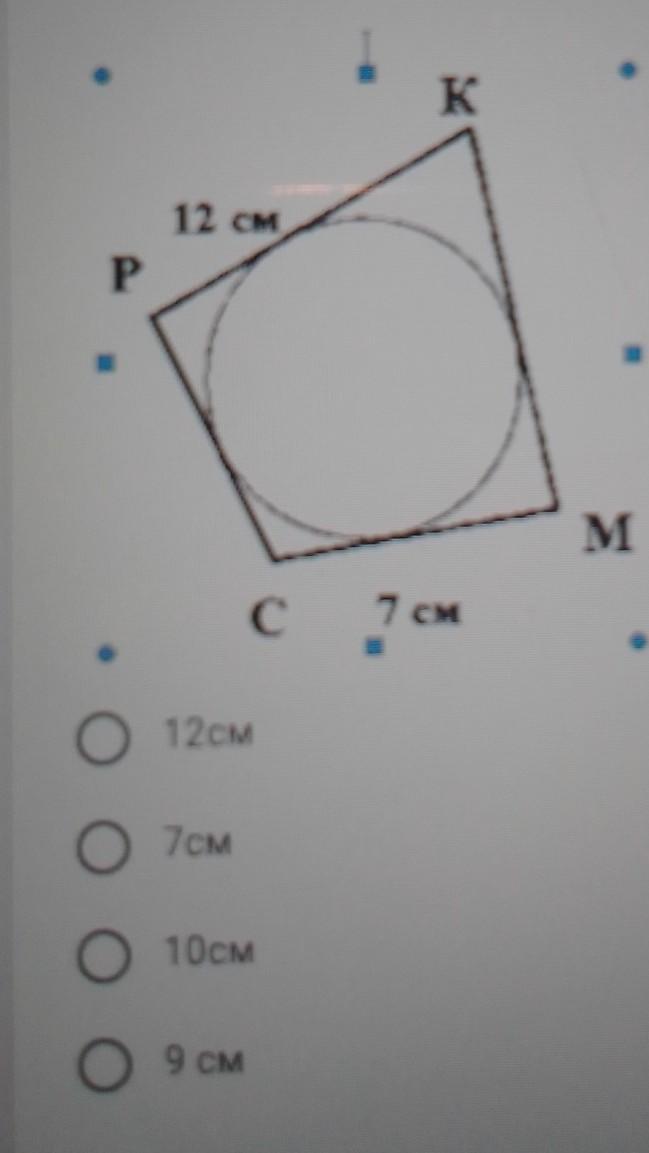 У чотирикутнику CPKM сторона РС на 2 см більша за сторону СМ. Знайти довжину сторони КМ чотирикутника. * +