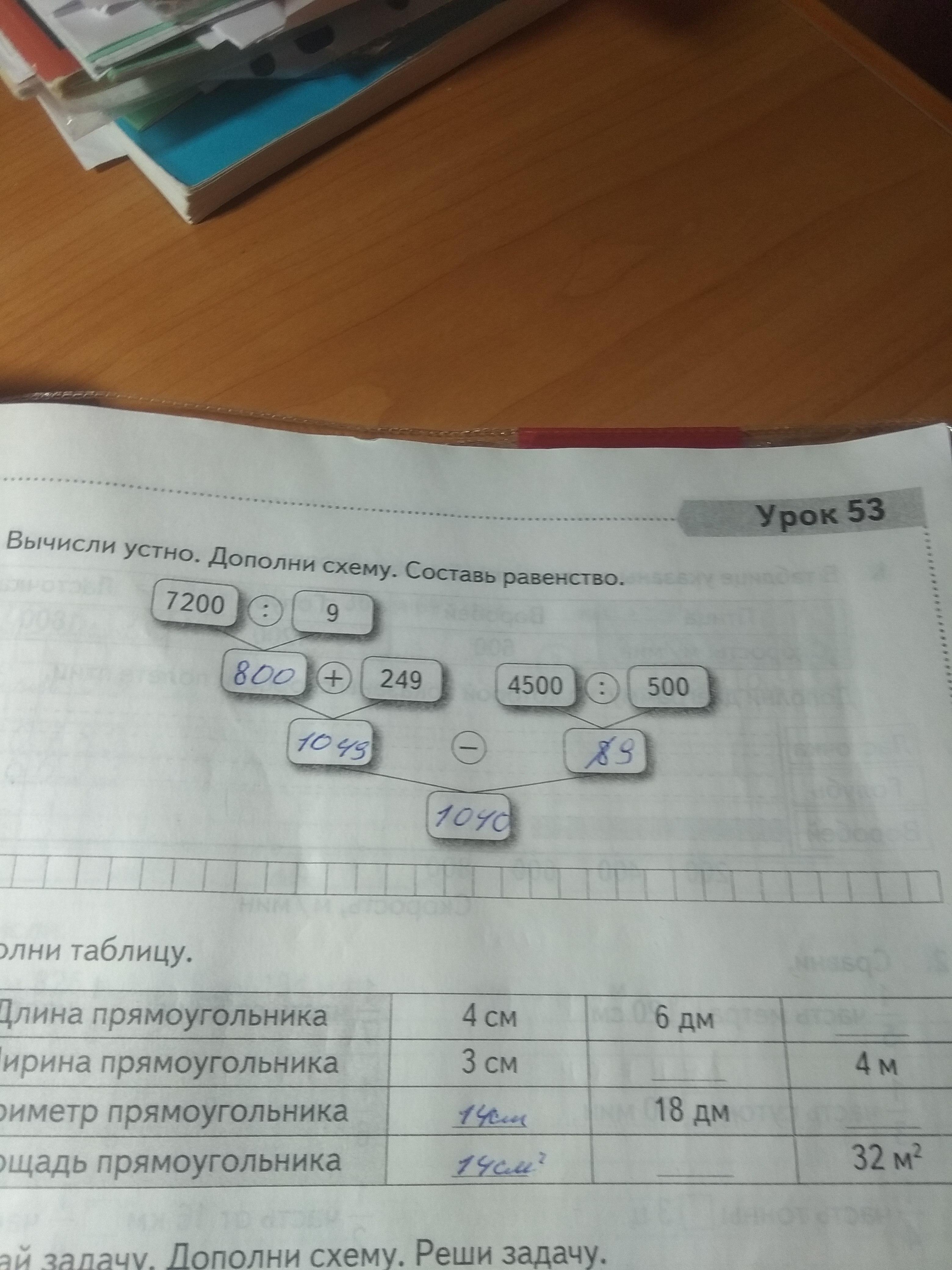 В первом задании уже всё верно вписано. Если надо в общем виде записать, то это будет 7200:9+249-4500:500=1040