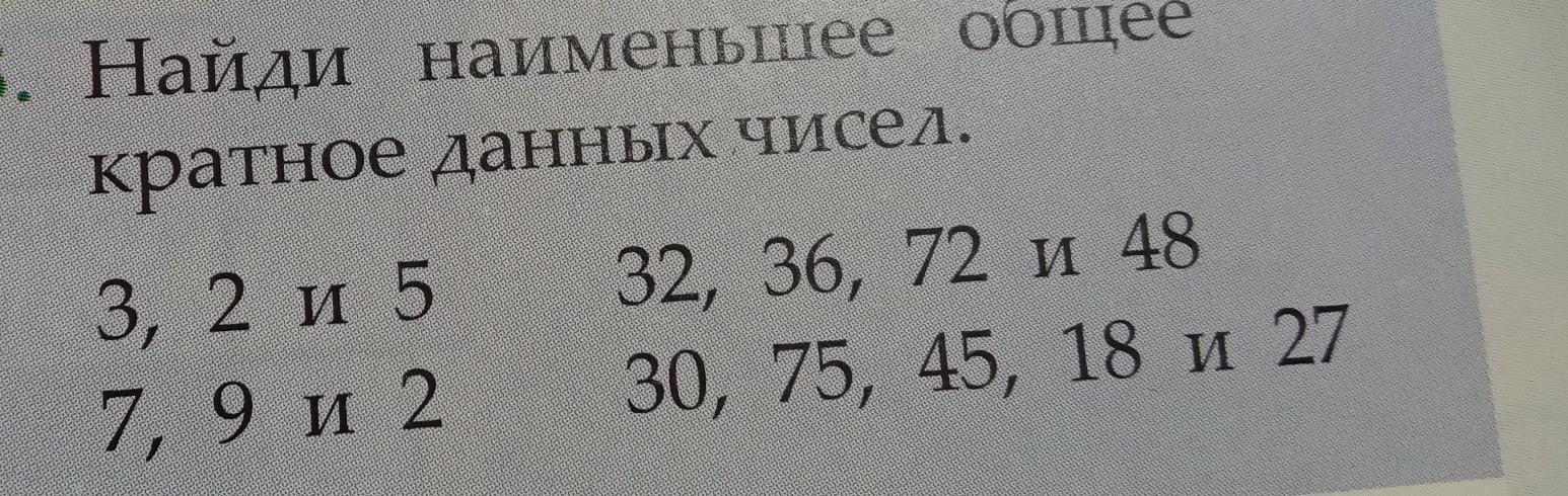Так как 3, 2, 5 взаимопростые, то НОК(3, 2, 5)=3×2×5=30