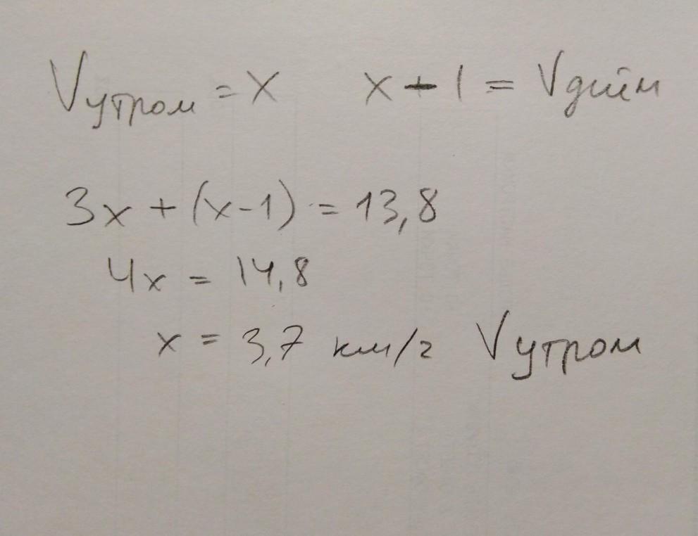 4х + 3(х-2)= 12,9; 7х =18,9; х = 2,7 км/час - скорость утром.